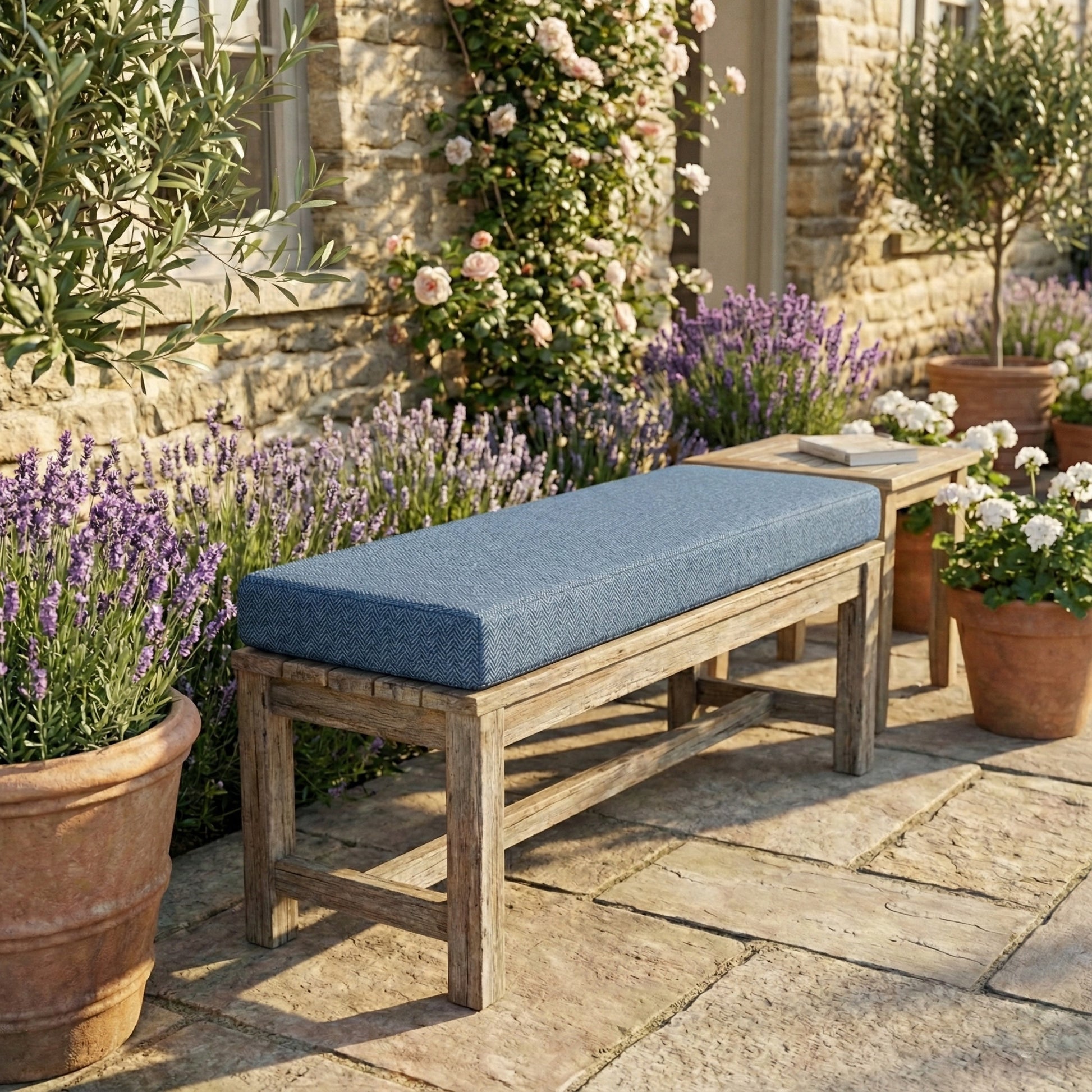 - Gebruik: Ideaal voor tuinbanken, zitmuurtjes of balkonmeubels.